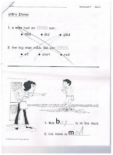 This is the original work that was deemed sloppy by the reading teacher and that he didn't complete during class time. He completed this in the 25 minutes before lunch. (While I was with Zachary.)